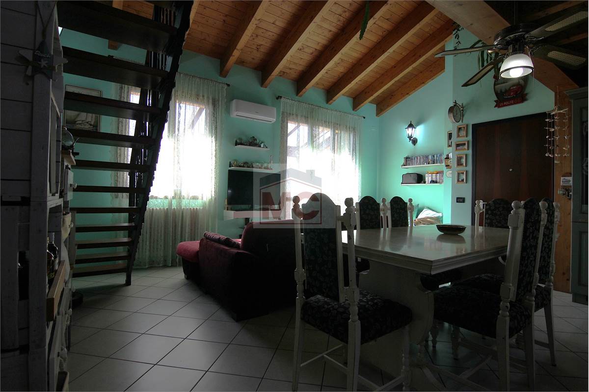 Appartamento sviluppato tutto su un piano composto da luminoso soggiorno con angolo cottura e terrazzo. Disimpegno notte, dove troviamo tre camere da letto e due bagni (di cui uno in camera), oltre a comodo ripostiglio uso lavanderia. Trovandoci all'ultimo piano, il volume in altezza è stato sfruttato creando un comodo soppalco, utile come studio, zona relax. Completa il tutto l'autorimessa.