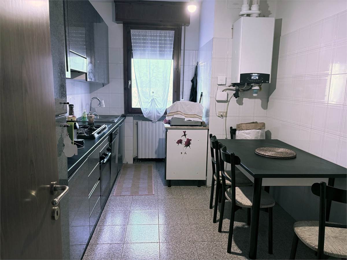 Alloggio in palazzina di 7 unità, con ampio giardino condominiale, al piano primo soggiorno, cucina, cameretta con balcone, camera e bagno;